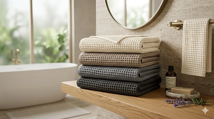One often-overlooked aspect: scent layering enhances the spa aesthetic. Since waffle towels dry quickly and resist mustiness, they pick up and retain pleasant scents better than damp terry alternatives. A few drops of essential oil (lavender, eucalyptus, bergamot) in your wash cycle, natural sachet packets in your linen closet, or simply ensuring your bathroom features good air circulation all contribute to that complete spa environment.